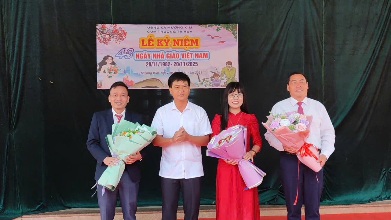 Ngày 20/11, Trường THCS Mường Kim tổ chức lễ kỷ niệm 43 năm ngày nhà giáo Việt Nam (20/11/1982-20/11/2025). Tới dự chia vui với nhà trường có đồng chí Nguyễn Văn Thăng - Bí thư Đảng uỷ, Chủ tịch HĐND xã; đại biểu 1 số cơ quan, đơn vị và ban phụ huynh nhà trường; cùng ngày Cụm các đơn vị trường Tà Hừa cũng tổ chức lễ kỷ niệm 43 năm ngày nhà giáo Việt Nam (20/11/1982-20/11/2025). Tới dự chia vui với nhà trường có đồng chí Vũ Văn Nội - Phó Bí thư, Chủ tịch UBND xã, đại biểu các cơ quan, ban, ngành và ban phụ huynh.