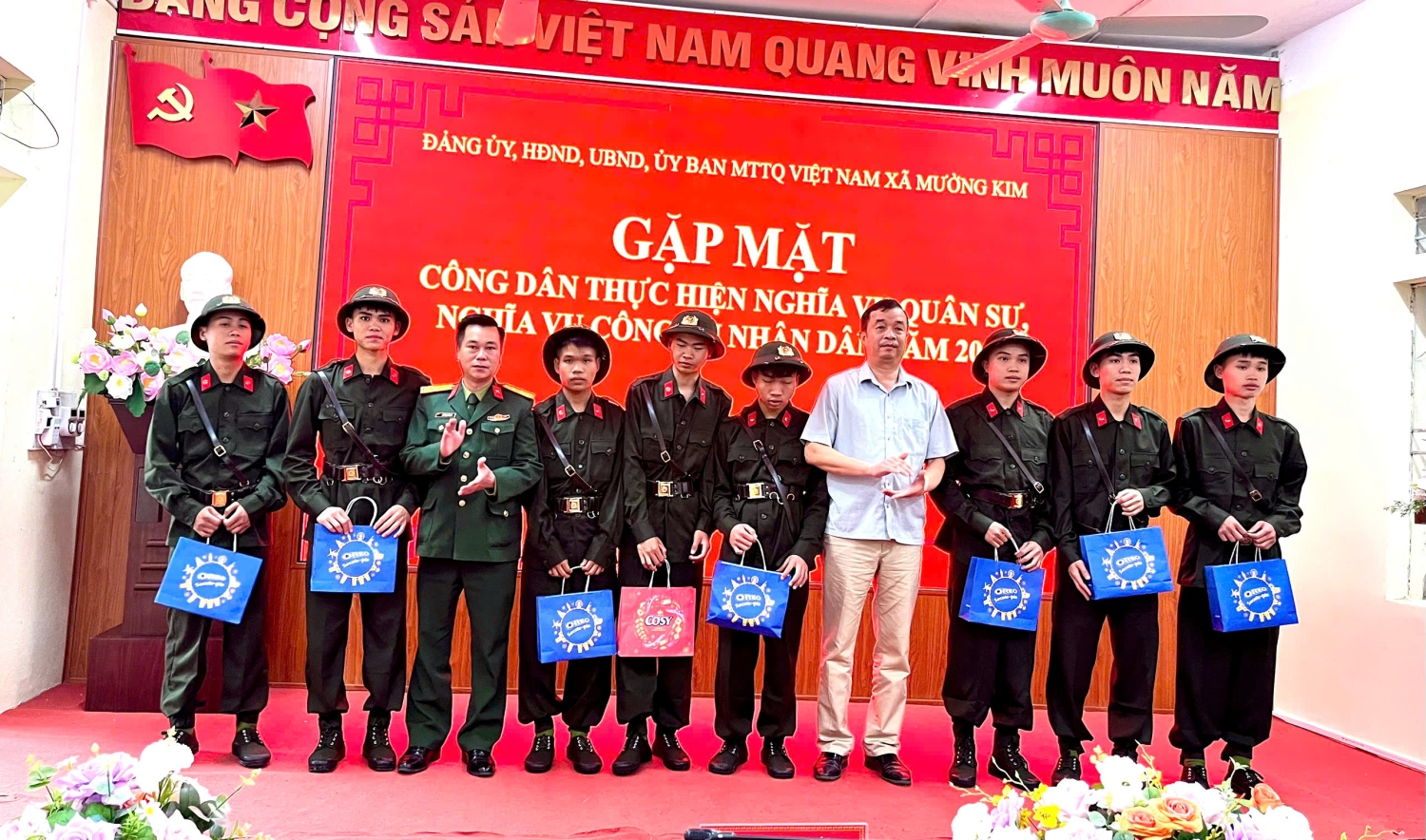 Nhân dịp này, lãnh đạo xã Mường Kim và các tổ chức đoàn thể đã tặng quà, động viên các công dân trước ngày lên đường nhập ngũ.