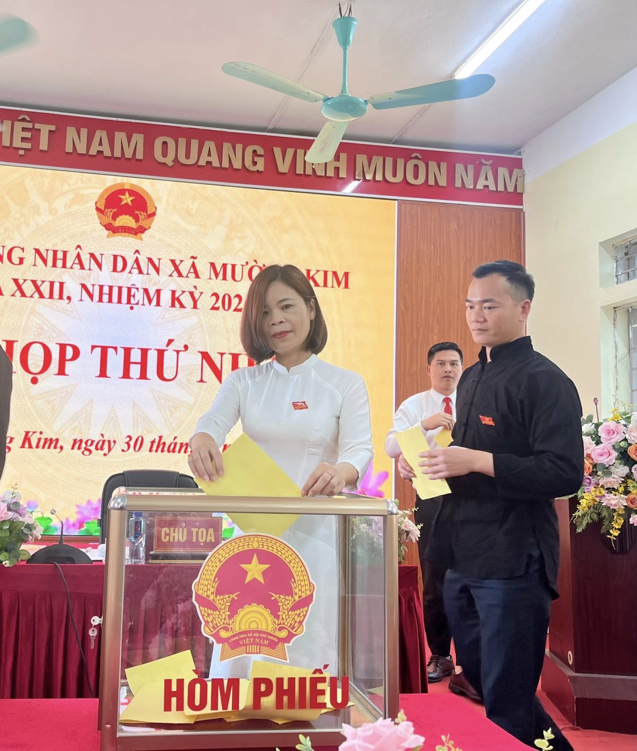 Kỳ họp đã tiến hành bầu các chức danh chủ chốt của HĐND và UBND xã nhiệm kỳ 2026 - 2031. Kết quả đồng chí Nguyễn Văn Thăng - Bí thư Đảng ủy, Chủ tịch HĐND xã khóa XXI, nhiệm kỳ 2021 - 2026 được bầu giữ chức Chủ tịch HĐND xã khóa XXII, nhiệm kỳ 2026 - 2031; đồng chí Vũ Văn Nội - Phó Bí thư Đảng ủy, Chủ tịch UBND xã nhiệm kỳ 2021 - 2026 được bầu giữ chức Chủ tịch UBND xã nhiệm kỳ 2026 - 2031. Kỳ họp cũng bầu các chức danh Phó Chủ tịch HĐND, Phó Chủ tịch UBND, Trưởng các Ban HĐND và Ủy viên UBND xã.