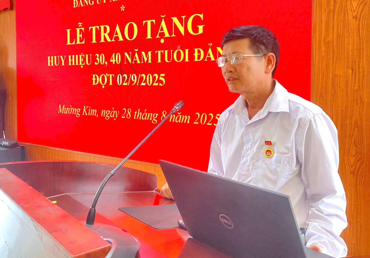 Chiều ngày 28/8/2025, Đảng ủy xã Mường Kim tổ chức lễ trao tặng huy hiệu 30, 40 năm tuổi Đảng cho 6 Đảng viên đợt 2/9/2025. Dự buổi lễ có đồng chí Nguyễn Văn Thăng - Bí thư Đảng ủy, Chủ tịch HĐND xã; các đồng chí lãnh đạo Thường trực Đảng ủy, HĐND, UBND, MTTQ, các đoàn thể xã; Bí thư các Chi bộ trực thuộc