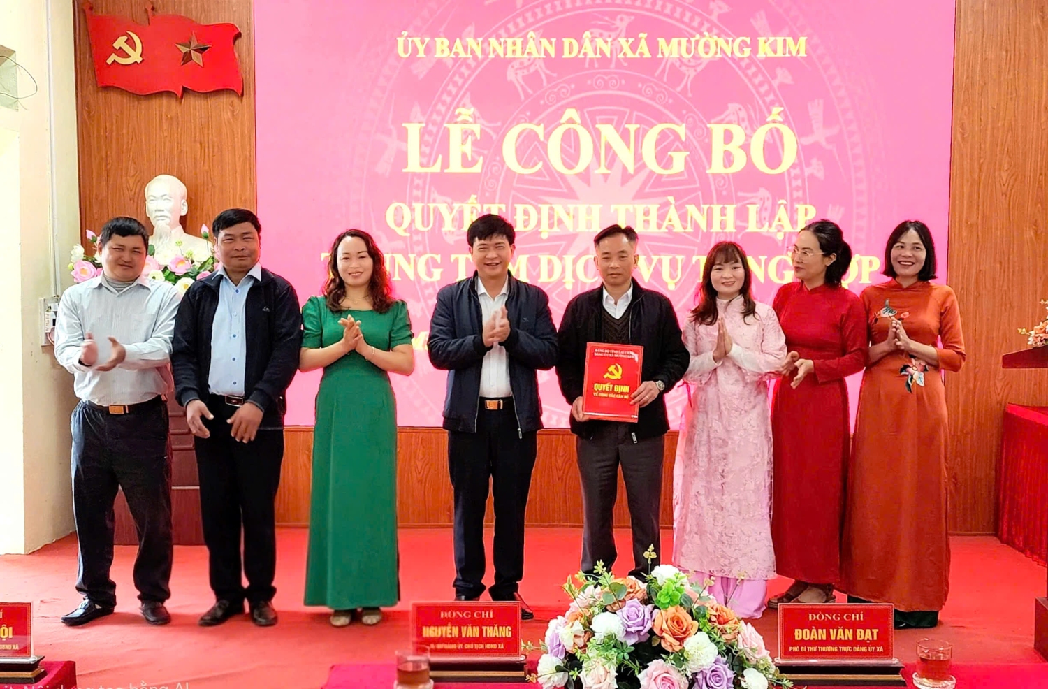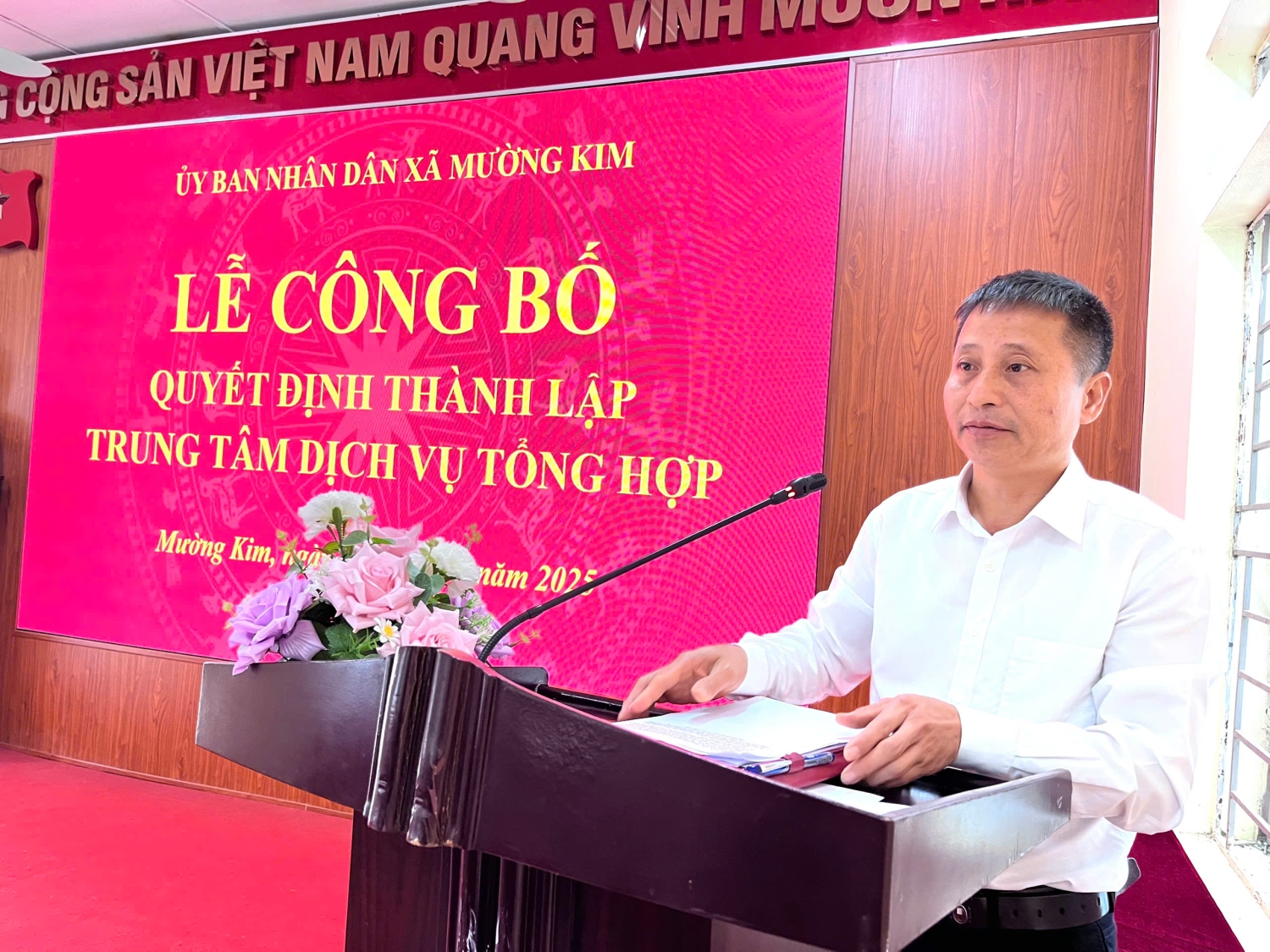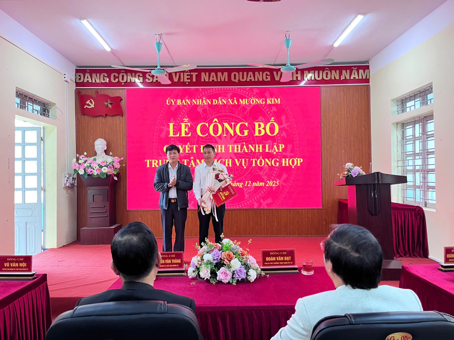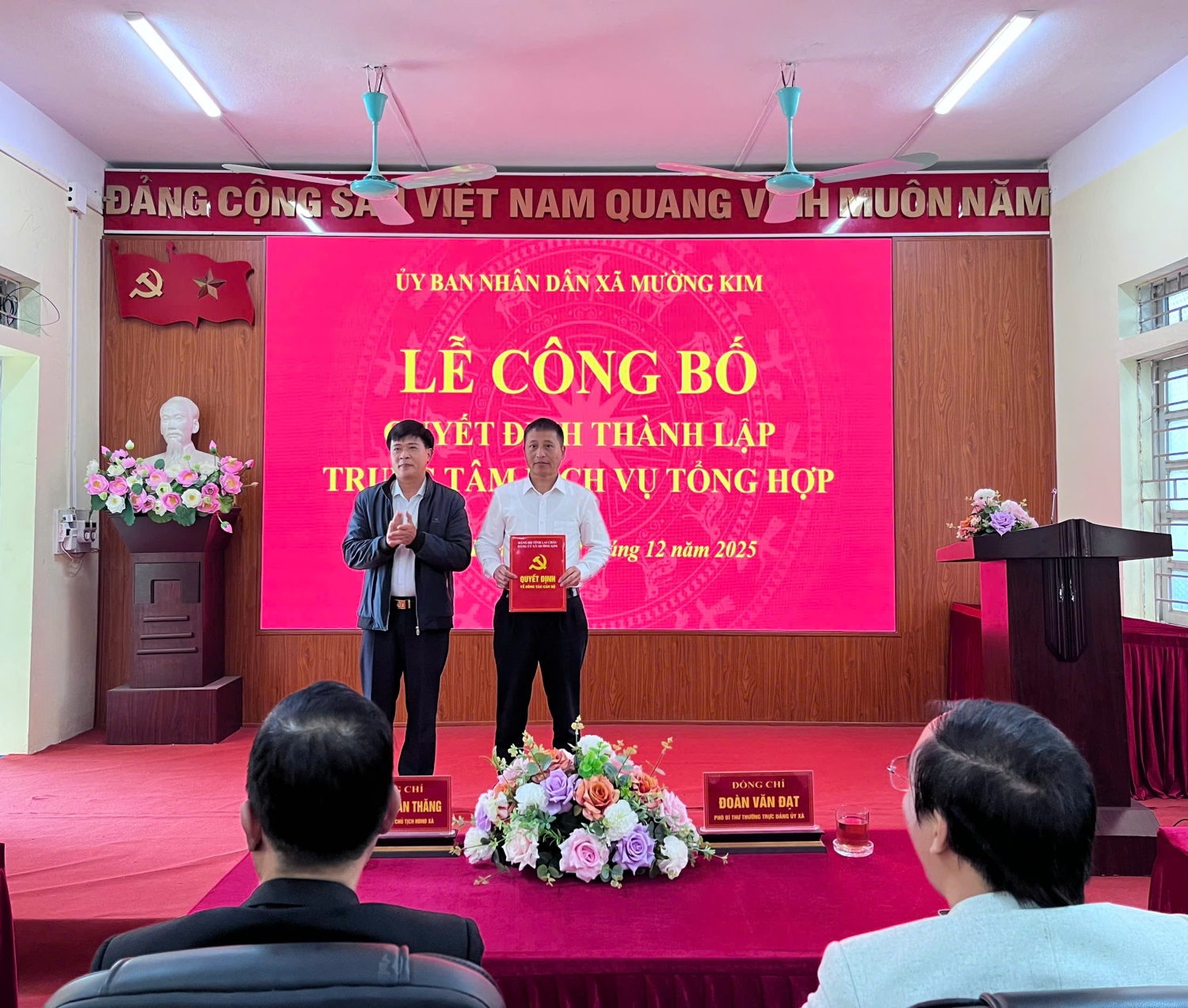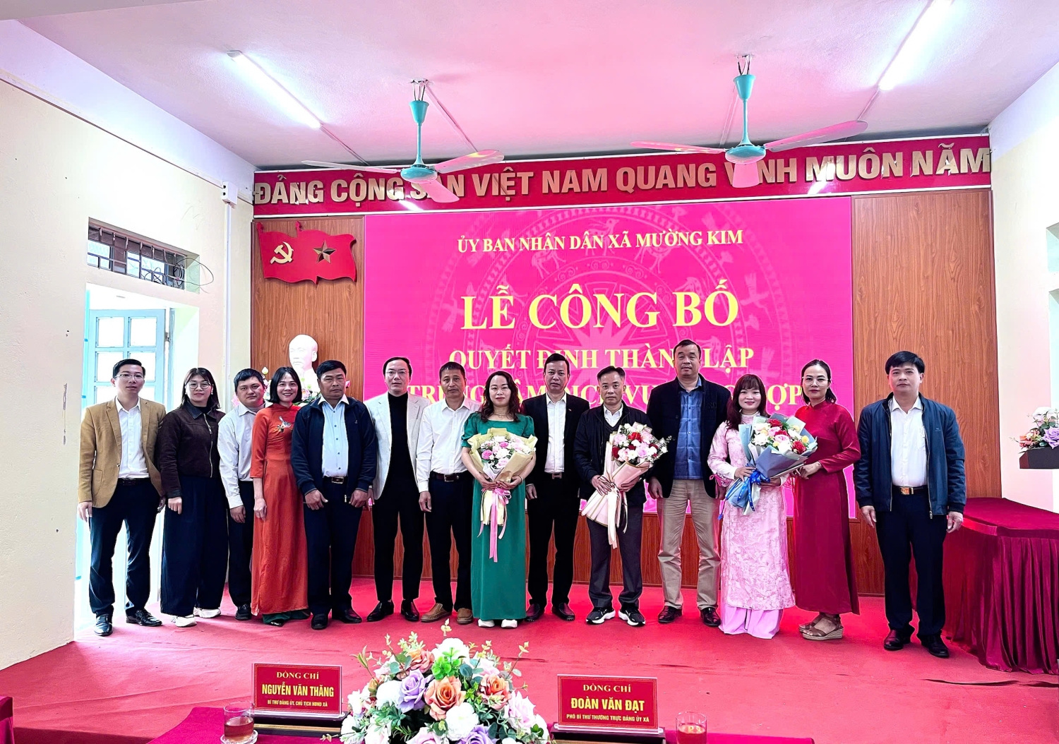 Sáng ngày 31/12/2025 UBND xã Mường Kim tổ chức công bố Thành lập Trung tâm Dịch vụ tổng hợp xã Mường Kim. Tới dự buổi lễ công bố có Đ/c: Nguyễn Văn Thăng - Bí thư Đảng ủy, Chủ tịch HĐND xã. Tại buổi lễ công bố Đ/c Vũ Văn Nội - Chủ tịch UBND xã đã trao công bố và trao các Quyết định tiếp nhận và phân công công tác đối với viên chức Trung tâm Dịch vụ tổng hợp và Quyết định bổ nhiệm Giám đốc Trung tâm Dịch vụ tổng hợp đối với Đ/c Nguyễn Văn Thế. Đ/c Vũ Văn Nội cũng đã phát biểu chỉ đạo giao nhiệm vụ cho Trung tâm Dịch vụ tổng hợp sớm khắc phục khó khăn trước mắt để bắt tay ngay vào thực hiện nhiệm vụ đồng thời cũng chỉ đạo các cơ quan, đơn vị có liên quan phối hợp, hỗ trợ cùng Trung tâm Dịch vụ tổng hợp sớm ổn định và đi vào hoạt động có hiệu quả để hoàn thành tốt các nhiệm vụ được giao. Thay mặt Lãnh đạo Trung tâm Dịch vụ tổng hợp Đ/c Nguyễn Văn Thế đã phát biểu nhận nhiệm vụ.
