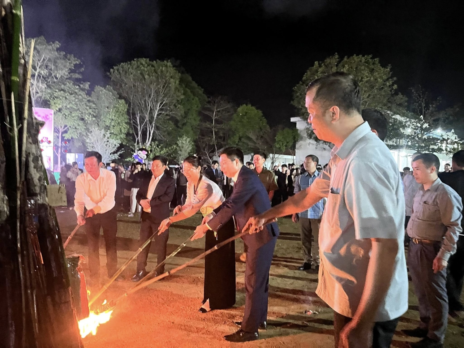 Buổi tối cùng ngày là chương trình văn nghệ đặc sắc với chủ đề ca người Đảng, Bác Hồ, tình yêu quê hường đất nước… với sự tham gia của các đội văn nghệ đến từ các bản, trường học trên địa bàn xã. Cũng tại chương trình ban tổ chức đã trao giải đua thuyền Đuôi Én, các môn thể thao Bắn nỏ, đẩy gậy, kéo co, tó má lẹ cho các đội đạt giải. Nhân dịp này xã đã trao 70 xuất quà của cô Vũ Thị Hảo và những người bạn bên đất nước Singapo cho các hộ gia đình có hoàn cảnh khó khăn trên địa bàn xã.